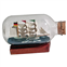 Ett litet skepp i en glasflaska, ett gammalt hederligt flaskskepp! Flaskan är försedd med en kork och flaskan ligger ner på en dekorativ fot av trä.